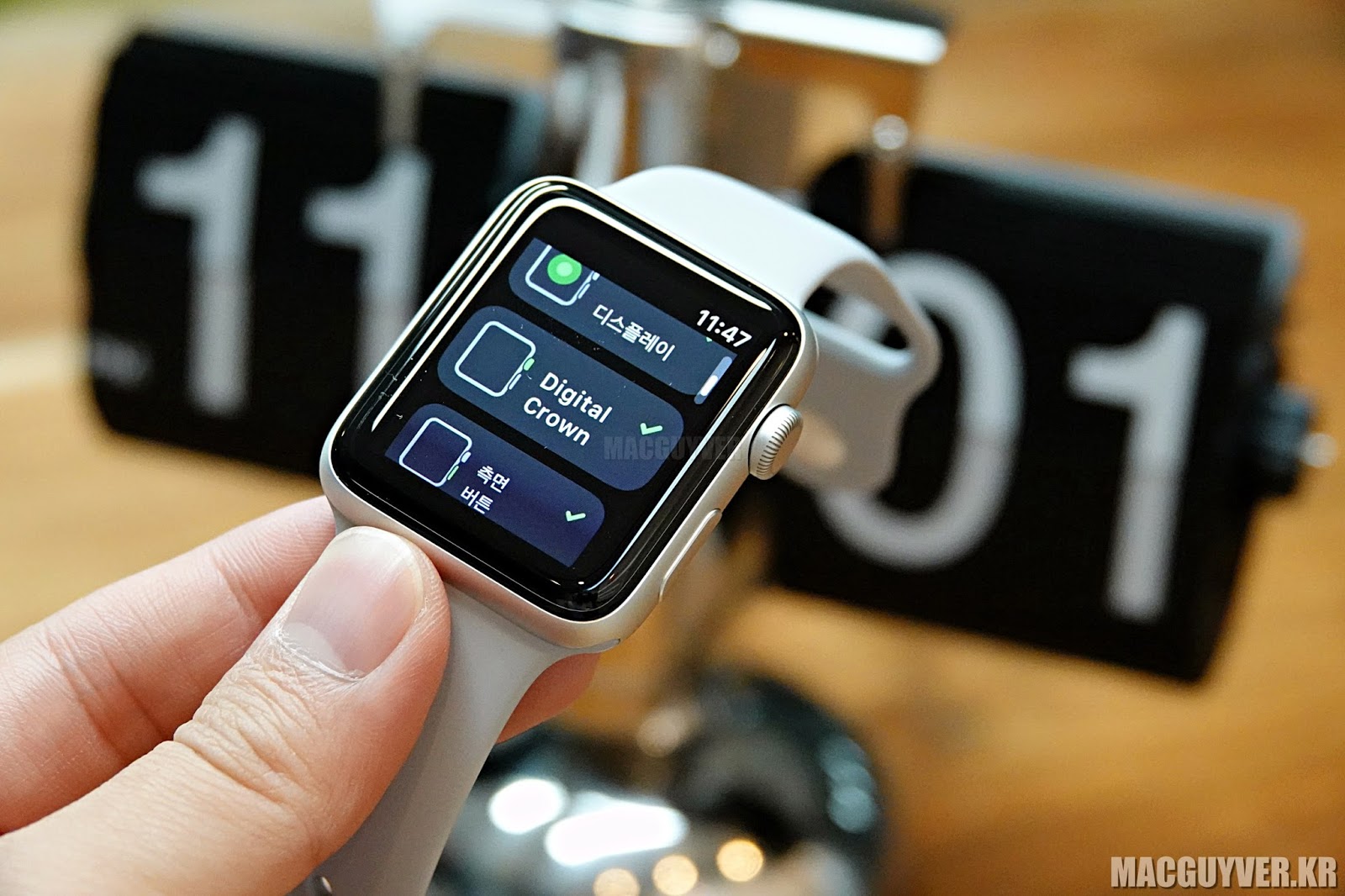 ✎ 애플워치 시리즈 3(좌) 애플워치 시리즈 2(우)는 미묘하게 위치가 다른 부분이 있다.