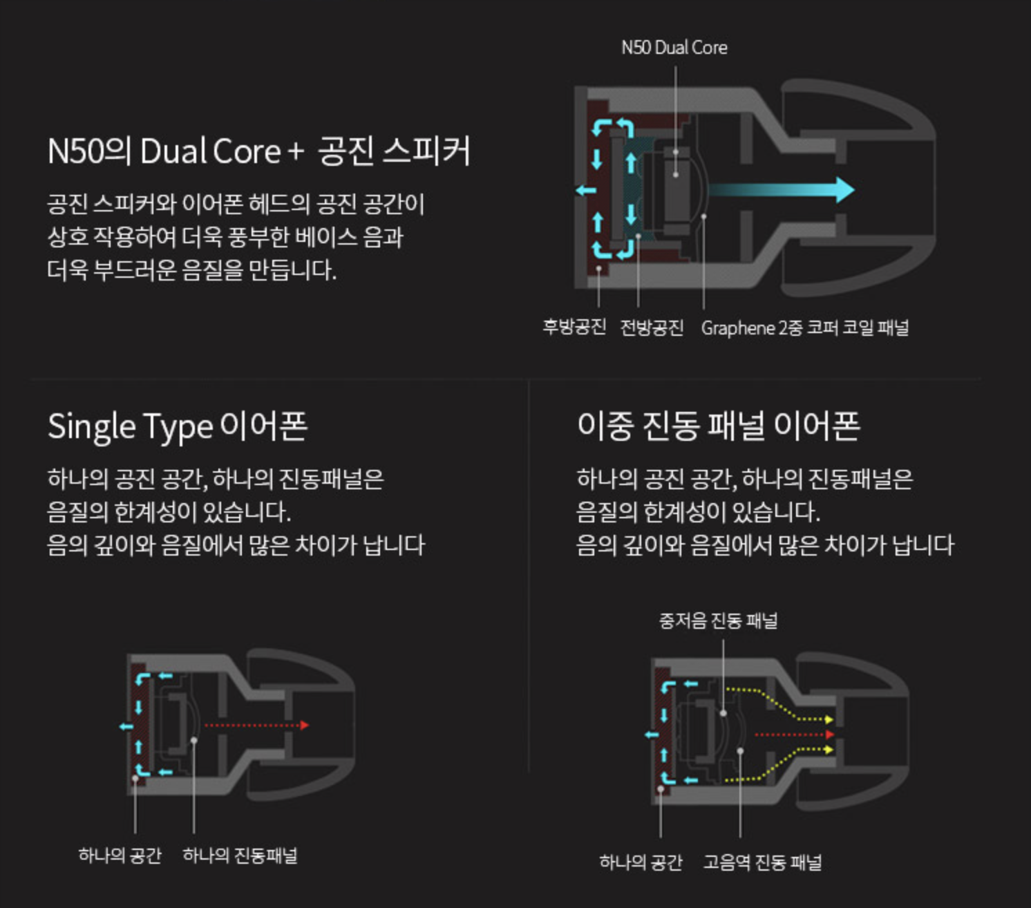✎ IPX7 방수 지원으로 편의성을 높였고, 8mm 다이나믹 드라이버 및 그래핀 소재 사용으로 놀라운 사운드를 들려 주었다.