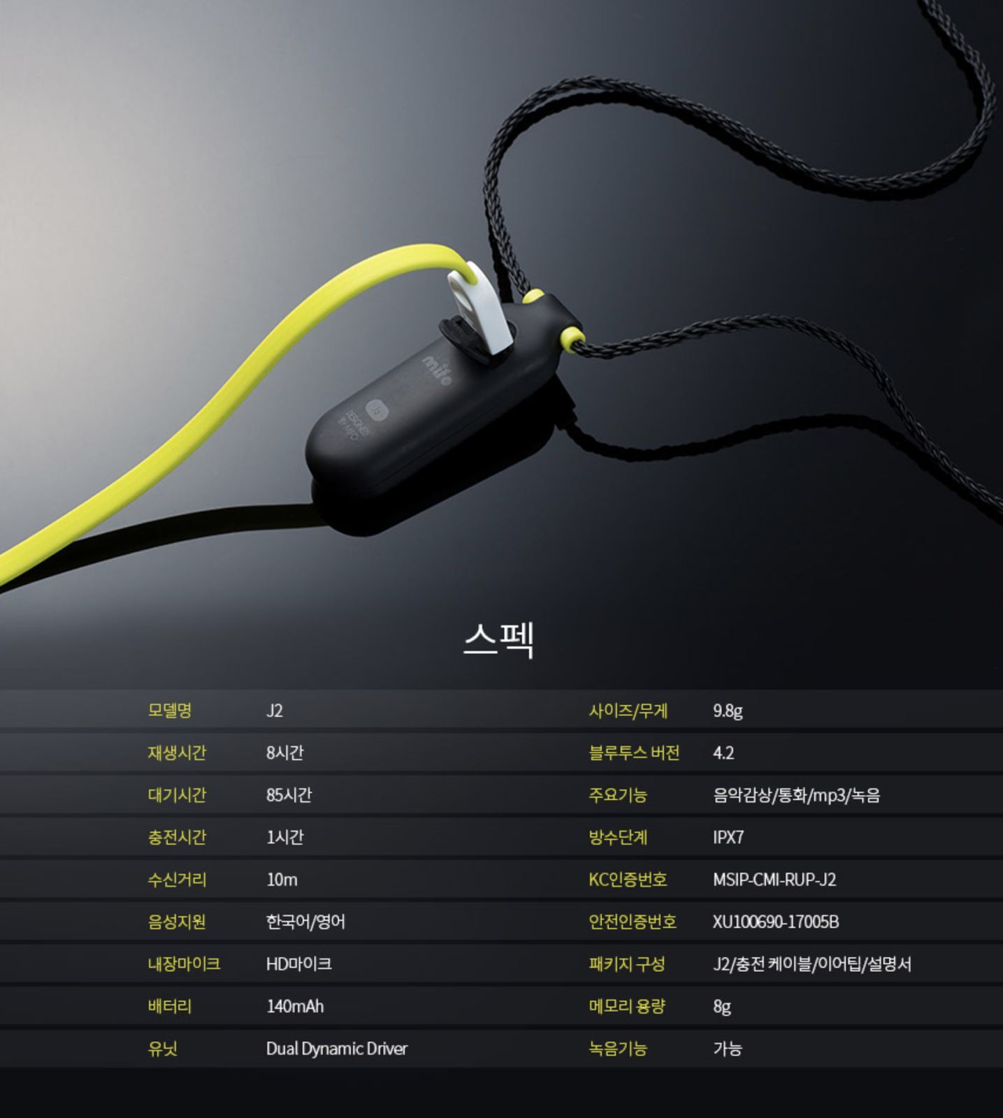 미포 J2 음질좋은 블루투스 이어폰을 직접 만져본 결과, 생각보다 마감이 뛰어났는데 어쩌면 방수를 위해서 꼼꼼한 마감은 필수였는지도 모르겠다. 이후 이어폰의 디자인은 제법 깔끔하면서도 아이덴티티가 있었고, 형광색의 노란 포인트는 촌스럽지 않으면서도 세련된 느낌까지 전달해줬다.