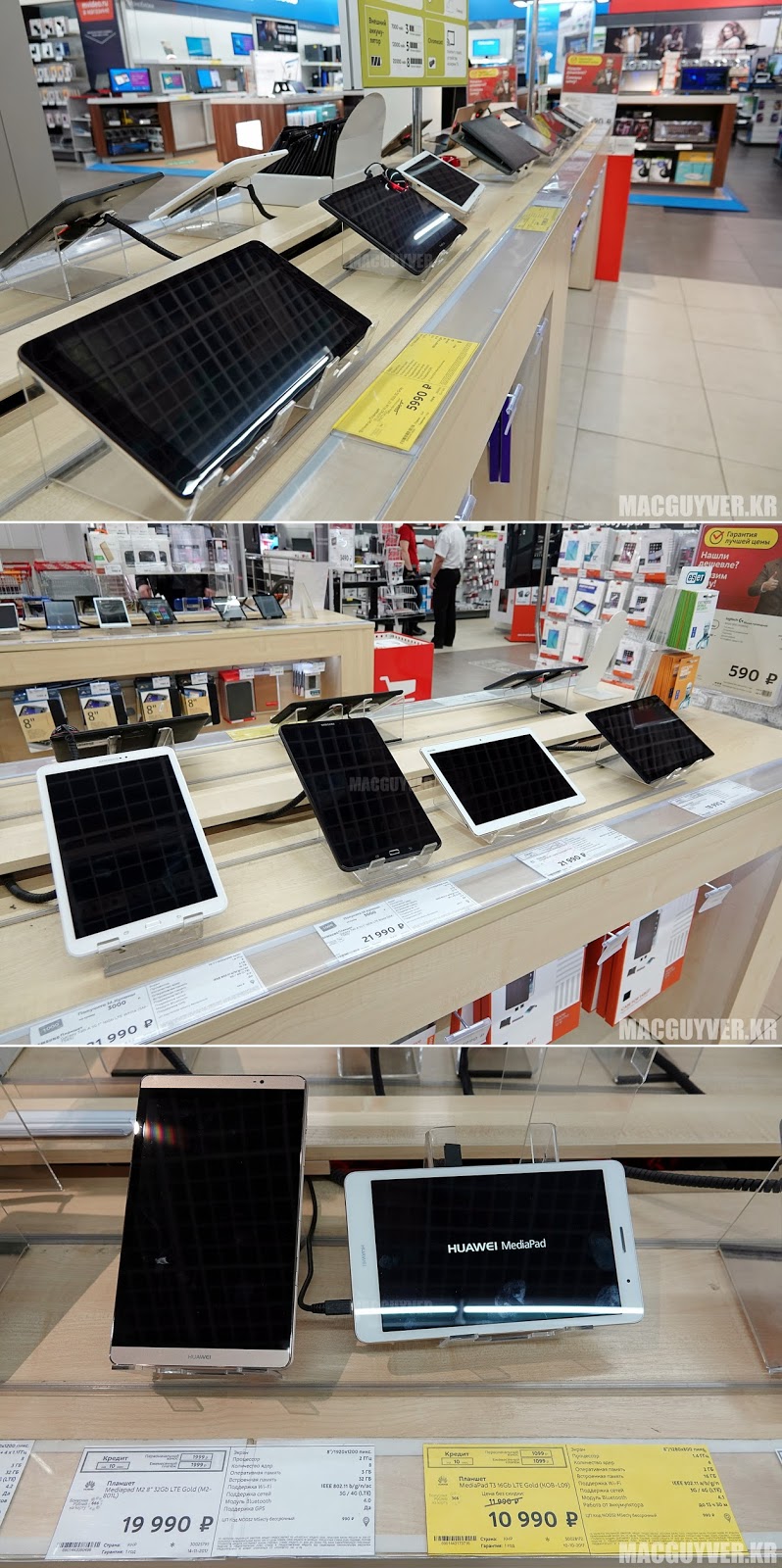 또한 플래그십 스마트폰들이 가장 눈에 띄고 많이 진열되어 있는 국내와 달리 모스크바의 주요 매장에서는 중저가 모델들을 더 많이 볼 수 있었다. 태블릿의 경우는 거의 중저가 모델만 볼 수 있었다고 표현하는게 맞을 듯 싶다. 물론 아이패드는 논외다.