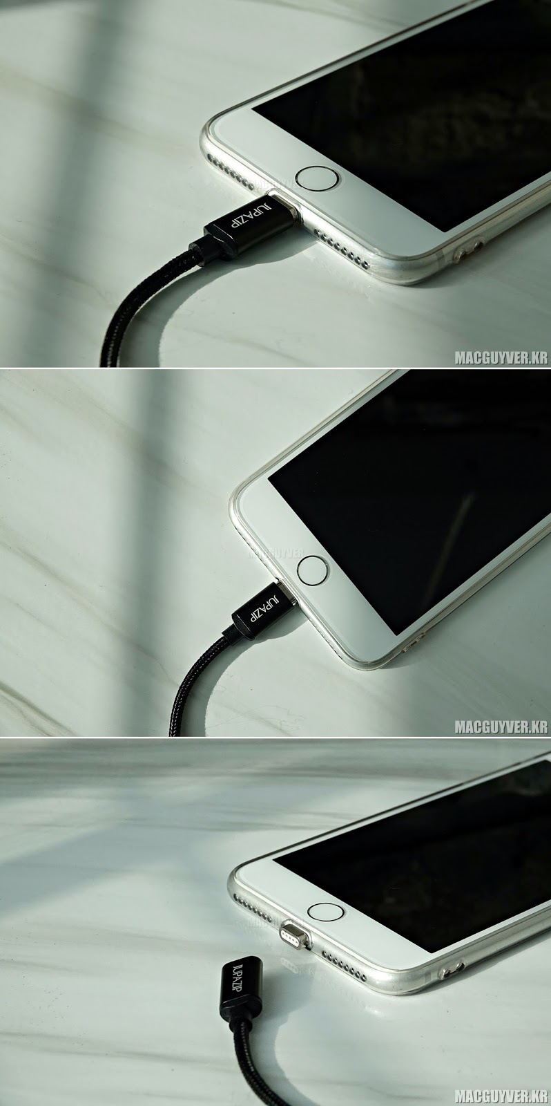 지난번에는 USB-C 타입의 마그네틱 케이블을 중점적으로 다뤘다면, 이번에는 라이트닝 케이블을 중점적으로 살펴볼 예정이다. 우선, 주파집 아이폰 마그네틱 케이블은 양방향을 지원해서 어디로 꽂아도 편리하게 사용이 가능하다. 마치 라이트닝 케이블과 같다.
