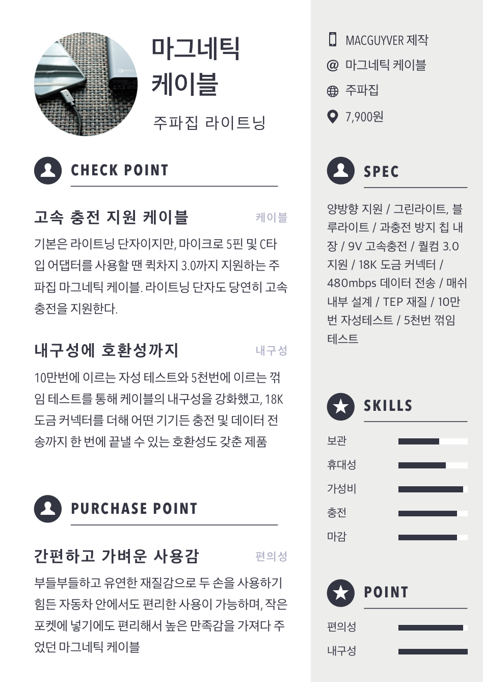 물론, 앞서 언급된 몇몇 아쉬움들도 알아둘 필요는 있기 때문에 자신에게 맞는 제품이라는 생각이 든다면 가성비가 뛰어난 주파집 아이폰 마그네틱 케이블에 대해 알아보는 것도 좋을 것 같다. - MACGUYVER.