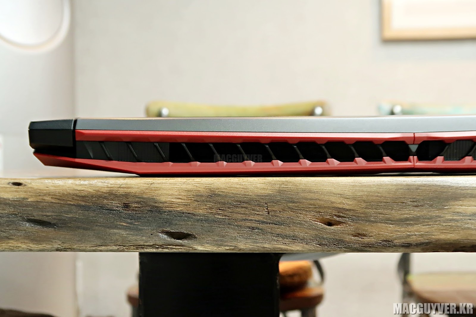 또한 터치패드 주변을 둘러싼 붉은 라인, 게임에서 가장 많이 사용되는 W,A,S,D 키를 별도의 붉은색으로 표시한 디자인, 살짝 안으로 들어가서 적당히 깊은 키감을 제공하는 키보드를 사선으로 깎아낸 디자인까지, 자칫 밋밋하거나 너무 과할 수도 있는 요소들을 절묘하게 섞은 것을 체감하는 순간이었다.