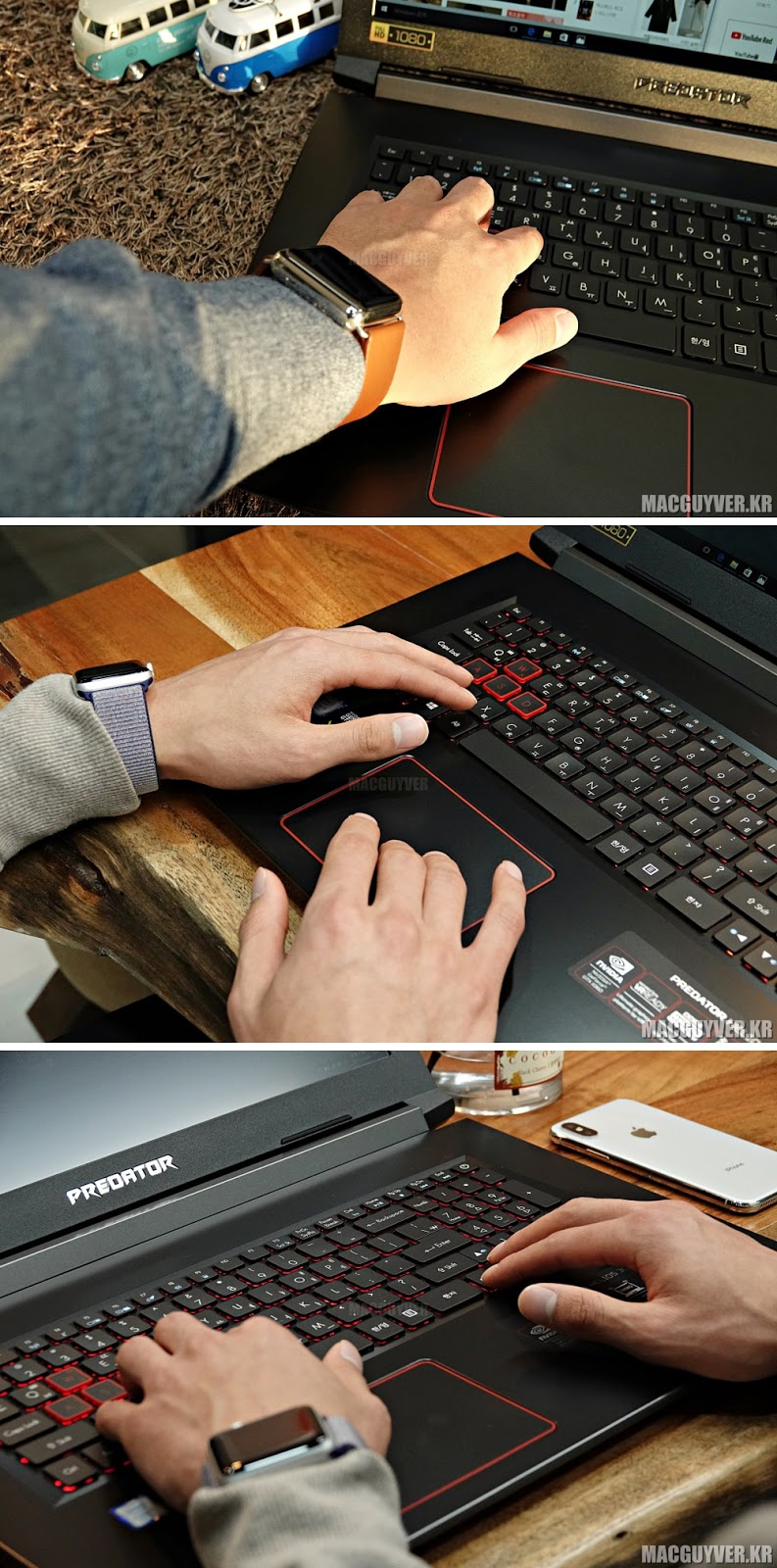 그 점에서 에이서 프레데터 헬리오스 300 PH317-51-7913 게이밍 노트북의 키감은 기대 이상이었는데, 우선 무소음에 가깝다는 점에서 야간에도 마음껏 키보드를 누를 수 있었고, 키감이 깊이감이 있으면서도 너무 물렁하지 않아서 손에 더해지는 스트레스를 크게 줄일 수도 있었다.
