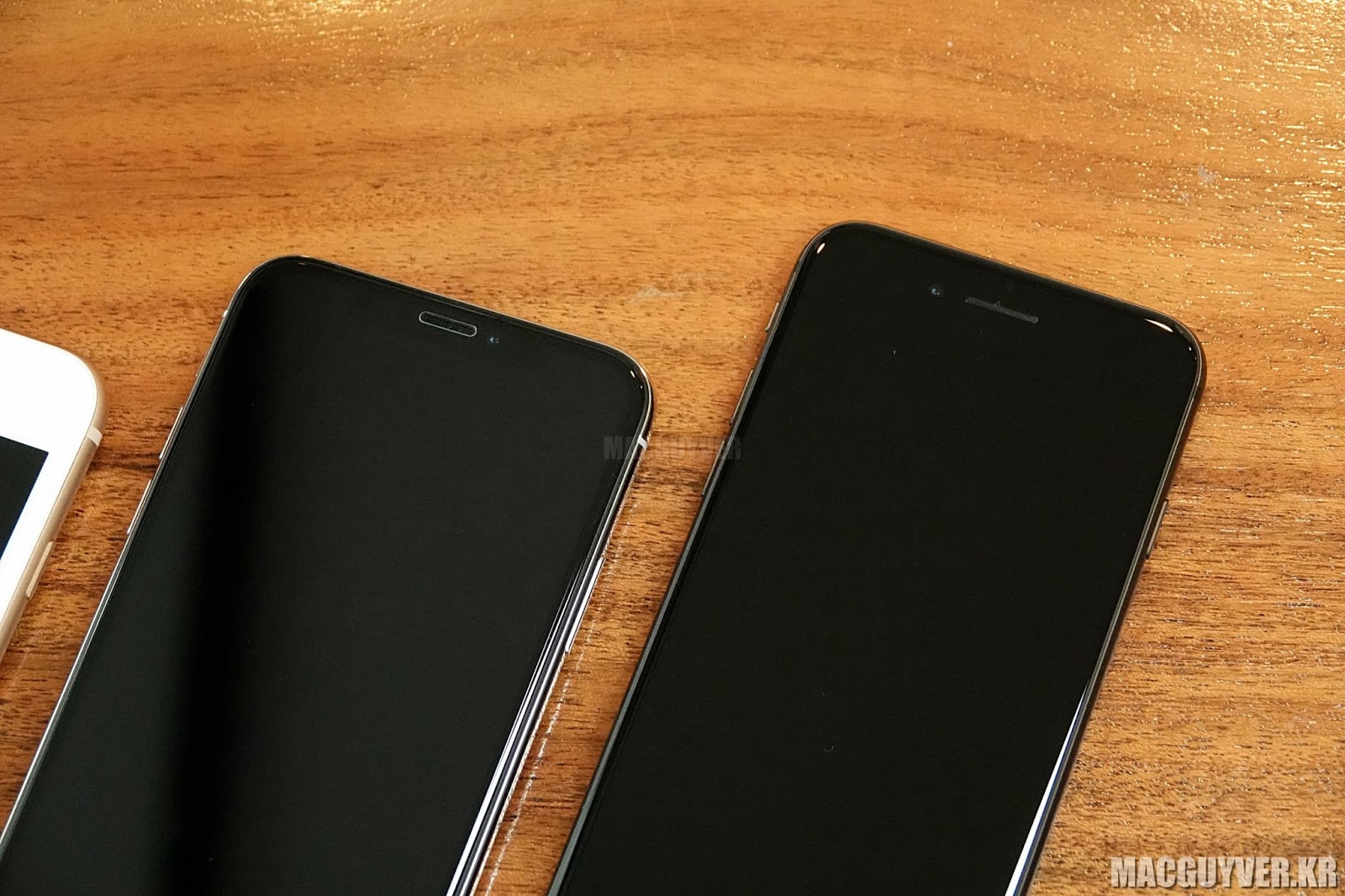 오늘은 간단히 아이폰X과 아이폰8/8+의 외형 디자인과 손맛에 대한 차이를 살펴볼 예정이다. 알려진 대로 아이폰X의 화면은 5.8형이지만 화면 비율이 19.5:9이기 때문에 실측 너비를 기준으로 하자면 아이폰8 플러스와 거의 같거나 사실상 아주 살짝 작은 면적을 가지고 있다.