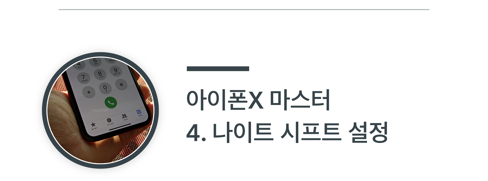 이미 나이트 시프트(Night Shift)를 활용하는 분들도 많지만, 트루 톤 디스플레이가 탑재되면서 더욱 자연스러워진 색감의 아이폰X의 경우는 나이트 시프트의 중요성을 잊고 사는 분들도 많은 것 같다.