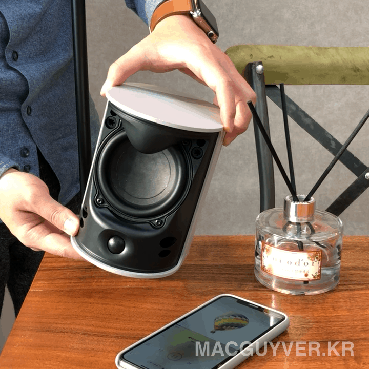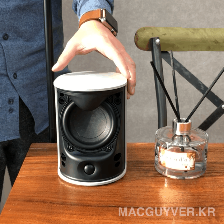 ✎ 가볍게 분리해서 커버를 변경할 수 있는 디자인, 내부적으로 매우 거대한 스피커가 위치한 것을 볼 수 있었다.