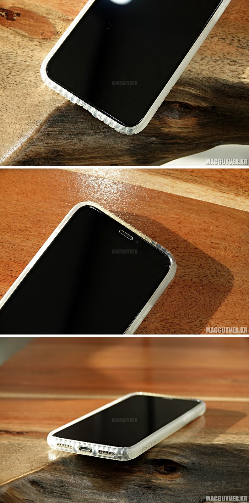 인케이스 프로텍티브 가드 커버 아이폰X 케이스가 지닌 차별화 포인트라면 액정보다 살짝 높게 설계되어 있는 실리콘 프레임을 통해서 화면을 아래로 놓아둘 경우에도 흠집을 예방한다는 것이 있다.
