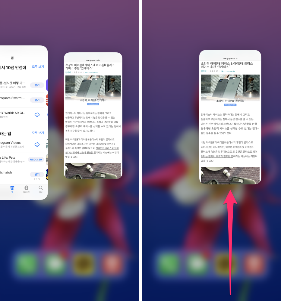 ✎ 좌우로 스와이프해서 앱 전환을 빠르게 할 수 있다.