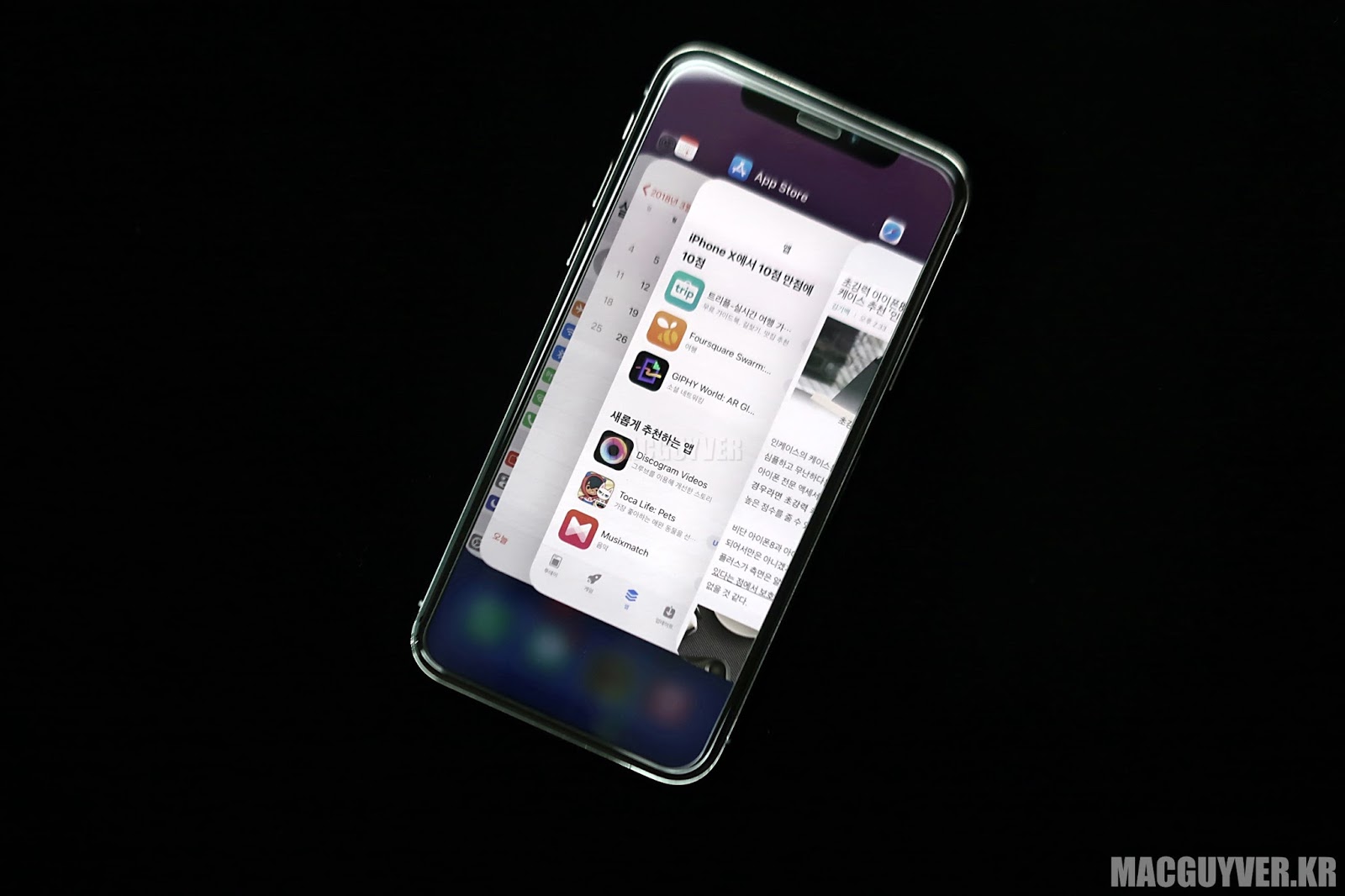 오늘은 아이폰X의 멀티태스킹에 대해서 살펴봤다. 좌우로 스와이프 해서 빠르게 앱 전환을 하거나, 위로 스와이프 해서 홈 화면으로 돌아가고, 살짝 스와이프 한 다음 멈춰 서 멀티태스킹을 실행할 수 있었다.