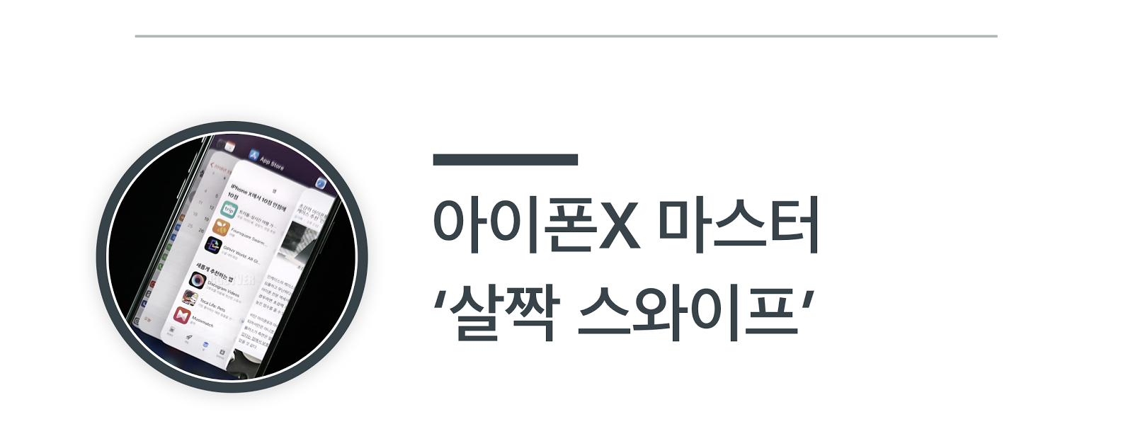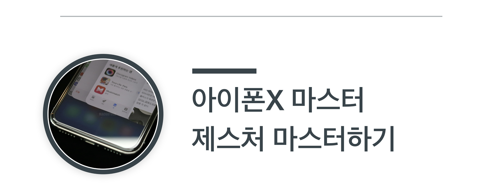 그렇다면, 아이폰X 마스터 #3를 통해서 홈 버튼 없이 멀티태스킹 제스처를 활용하는 방법에 관해서 살펴보도록 하자.