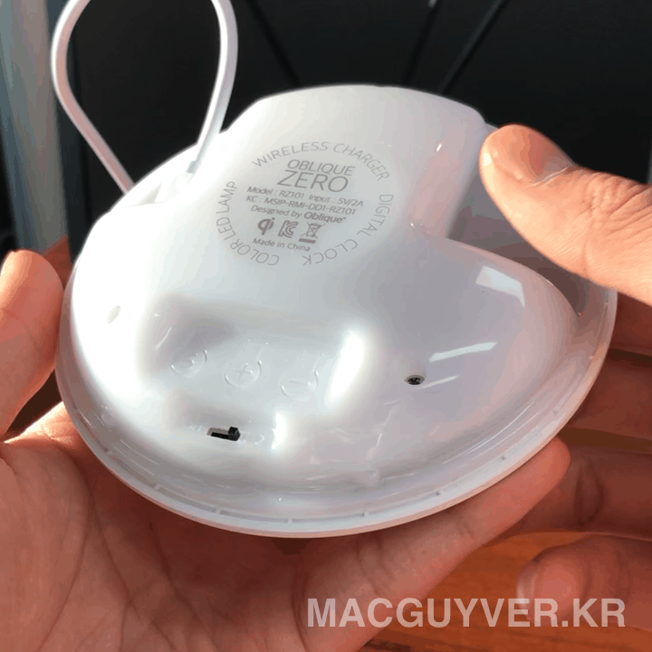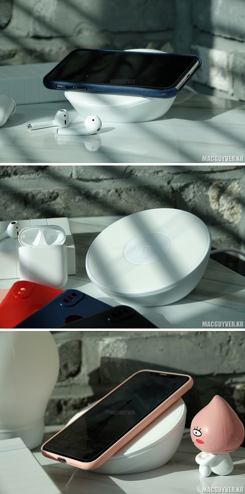 깔끔하고 심플한 화이트 톤의 오블리크 제로 LED 무선충전기를 통해서 아이폰X부터 갤럭시노트8 및 수많은 무선 충전 기기들, 또한 무선 충전을 지원하지 않는 수많은 스마트기기들까지 유선으로 충전해보고 활용해볼 수 있기 때문이다. - MACGUYVER.