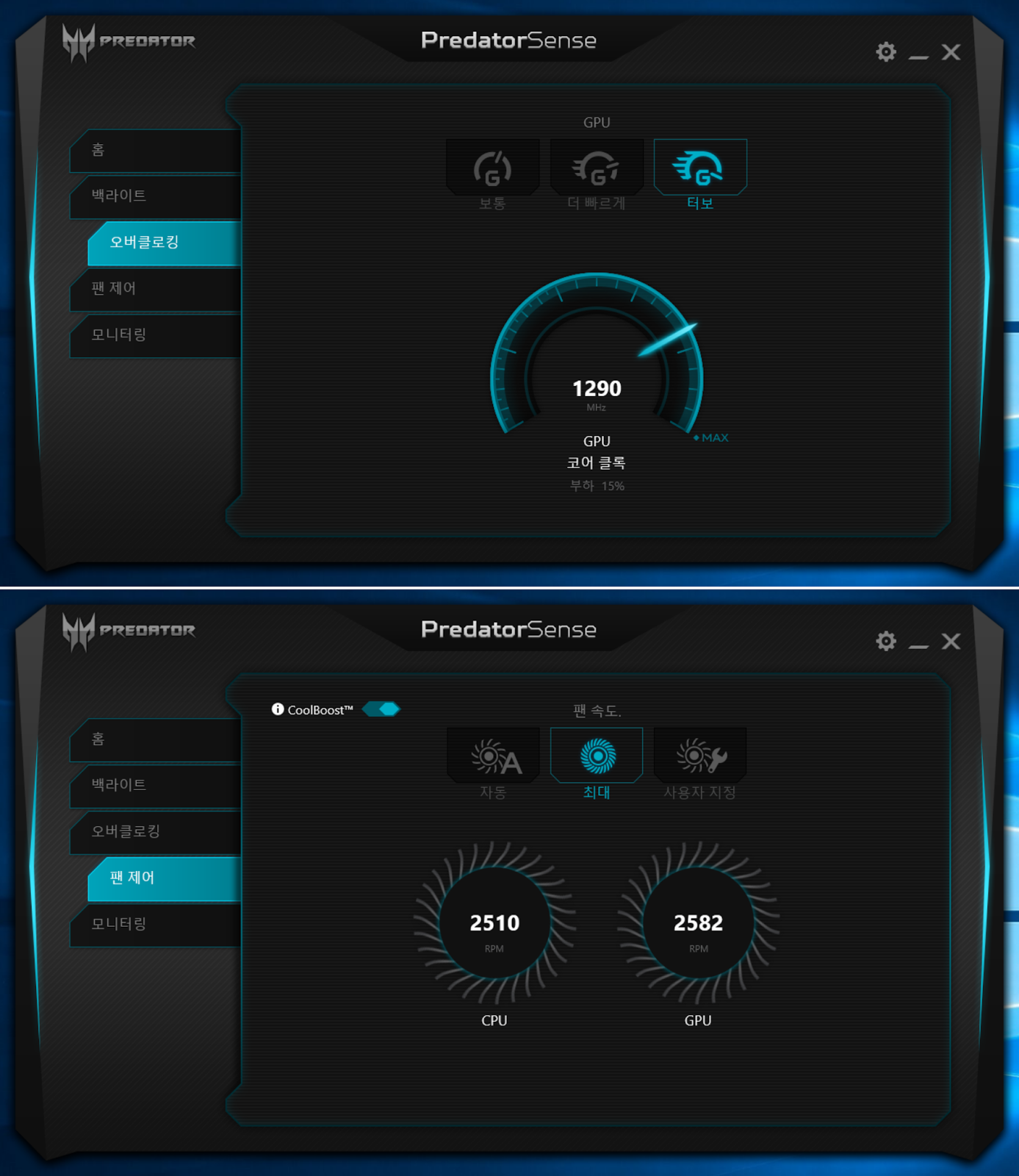 ✎ 프레데터 센스 기능으로 간편하게 터보모드를 사용할 수 있다.