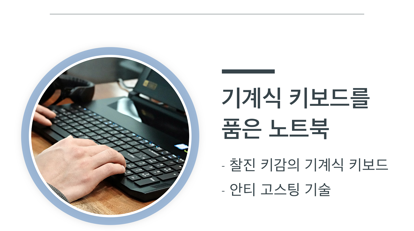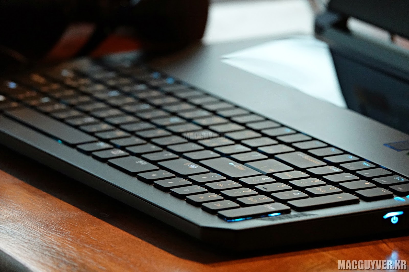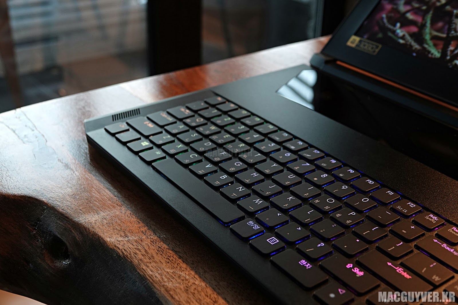 기계식 키보드가 탑재된 노트북은 처음 만져봤는데, 손맛이 일품이었다. 자꾸만 타이핑하게 만드는 키감이라고 할까, 여태껏 많은 노트북의 키보드를 눌러봤지만, 키보드의 근본이 달라서 그런지 키감의 차원도 달랐다.