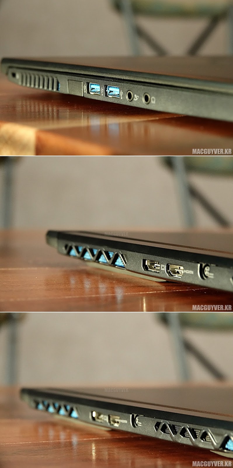 후에 다루겠지만 트리톤 700은 한마디로 장난 아닌 성능을 자랑하는데, 그럼에도 불구하고 두께가 1.89cm밖에 되지 않는다. 무게도 2.45kg으로 휴대용 노트북으로써 나쁘지 않은 무게다.