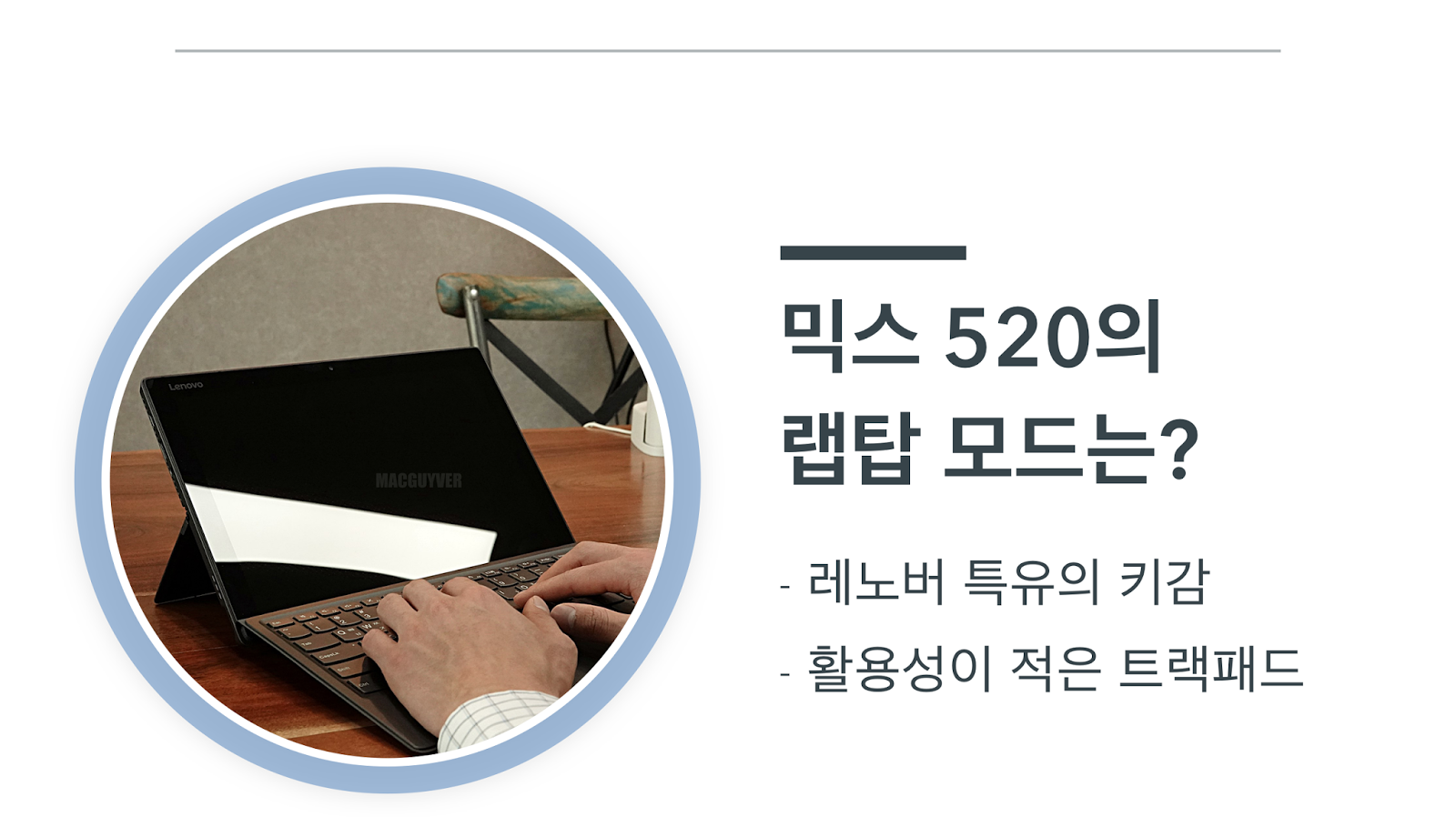 그럼에도 레노버 아이디어패드 믹스 520은 그동안 두 마리 토끼를 잡으려다 한 마리도 제대로 잡지 못한 이도 저도 아닌 2in1 노트북들에서 느꼈던 아쉬움을 거의 해소해주었다는 점에서 합격점을 줄 수 있었다. - MACGUYVER.