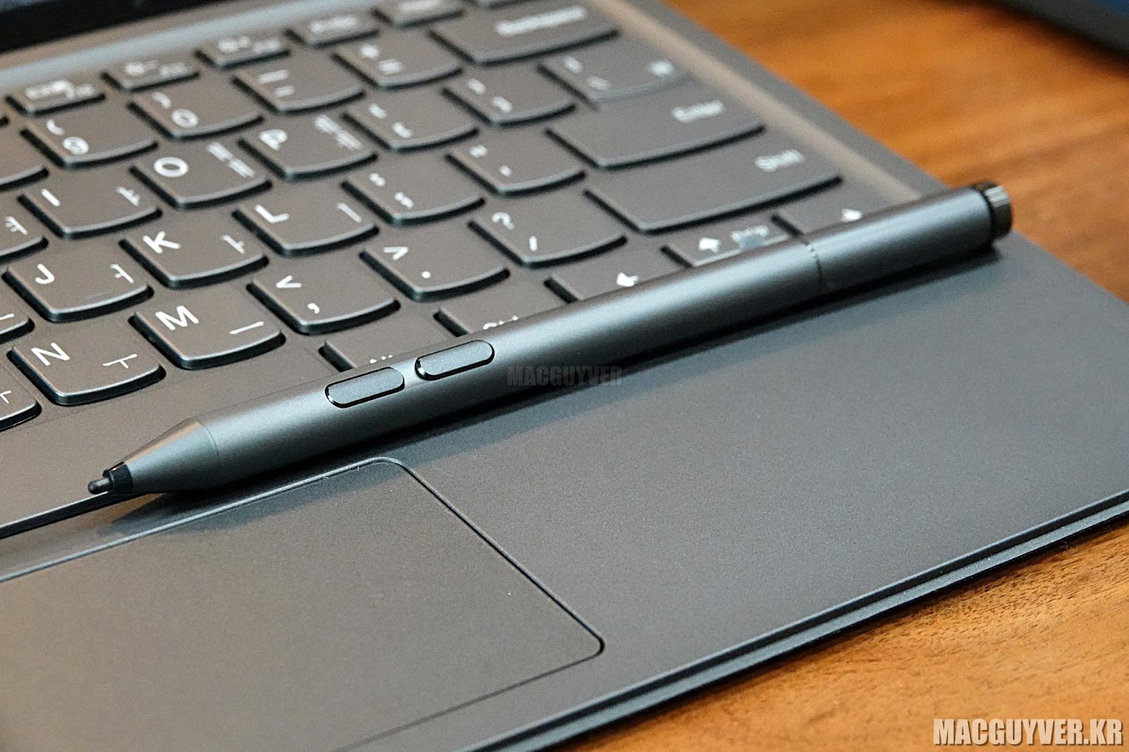 기본은 태블릿pc이지만, 서피스북이나 아이패드 프로처럼 쉽게 도킹할 수 있는 전용 키보드가 있고, 아이디어패드라는 이름에 걸맞게 스타일러스 펜까지 겸비하고 있다.