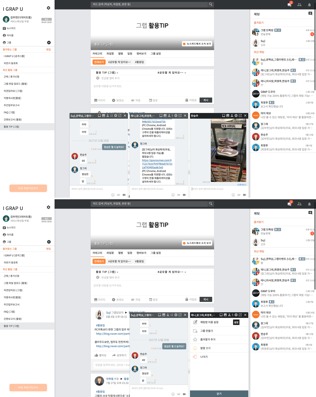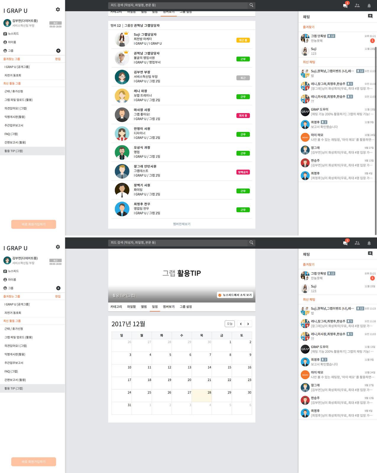 ✎ 직관적이면서도 실용적인 레이아웃으로 효율성을 끌어올린 기업용 메신저 그랩