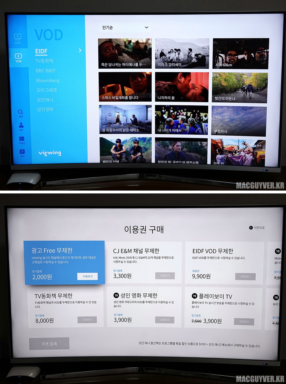 TV를 넘어선 뷰잉은 집에서 무엇을 해야 할지 고민하고 있는 분들에게, 그리고 TV라는 기기를 200% 활용하고 싶은 분들에게, 주말이면 어딘가로 나가고 싶기 보다는 집에서 편안히 드라마나 영화를 몰아서 보고 싶은 분들에게 꼭 추천해주고 싶은 서비스가 아닐까 싶었다. - MACGUYVER.