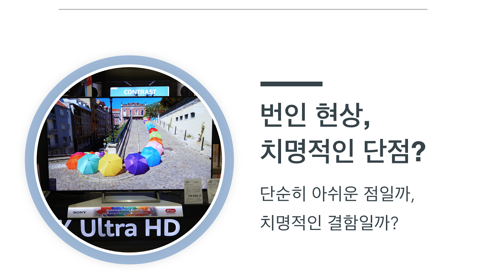 또한 아무 생각 없이 봐야 제맛인 TV를, 혹시나 번인이 발생하지는 않을까 하고 신경을 쓰며 시청하는 것도 그리 달가운 현상은 아니다. 드라마를 정주행 할 때마다 왼쪽 위에 떠 있는 방송사의 로고가 야속하게 느껴질 수 있기 때문이다.