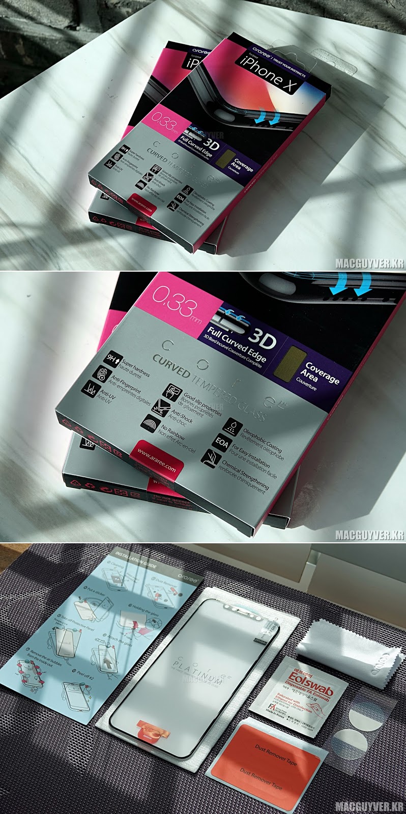 그렇기 때문에, 아이폰X의 화면을 더 깨끗하게 그리고 처음과 같이 유지하면서도 생폰과 같은 터치감과 손맛을 원했던 분들이라면 아라리 아이폰X 풀커버 강화필름을 고민해보는 것도 좋을 것 같다. - MACGUYVER.