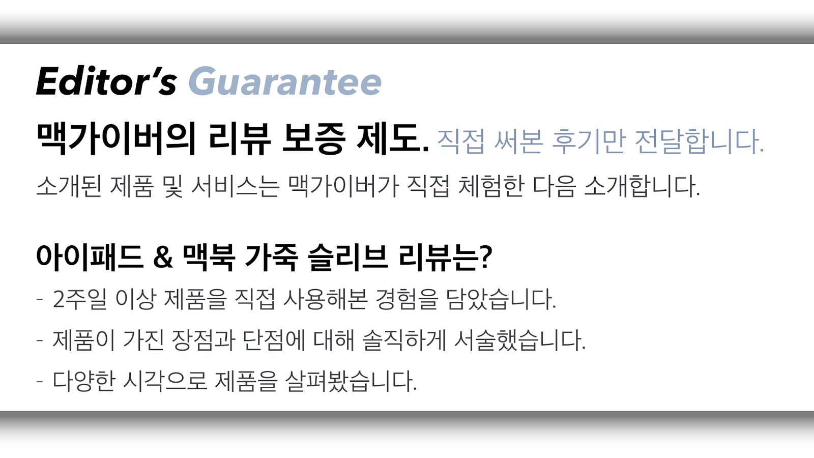오늘 소개해본 아이패드 프로 2세대 파우치 & 12형 맥북 가죽 슬리브는 가격이 비싸다. 하지만 누군가에게는 가격을 넘어선 편의성이나 만족도, 손맛과 완성도를 원할 수 있기 때문에 제대로 된 가죽 케이스 및 파우치, 슬리브를 찾았다면 아이패드 프로 2세대 파우치 & 12형 맥북 가죽 슬리브를 고민해보는 것도 좋을 것 같다. - MACGUYVER.