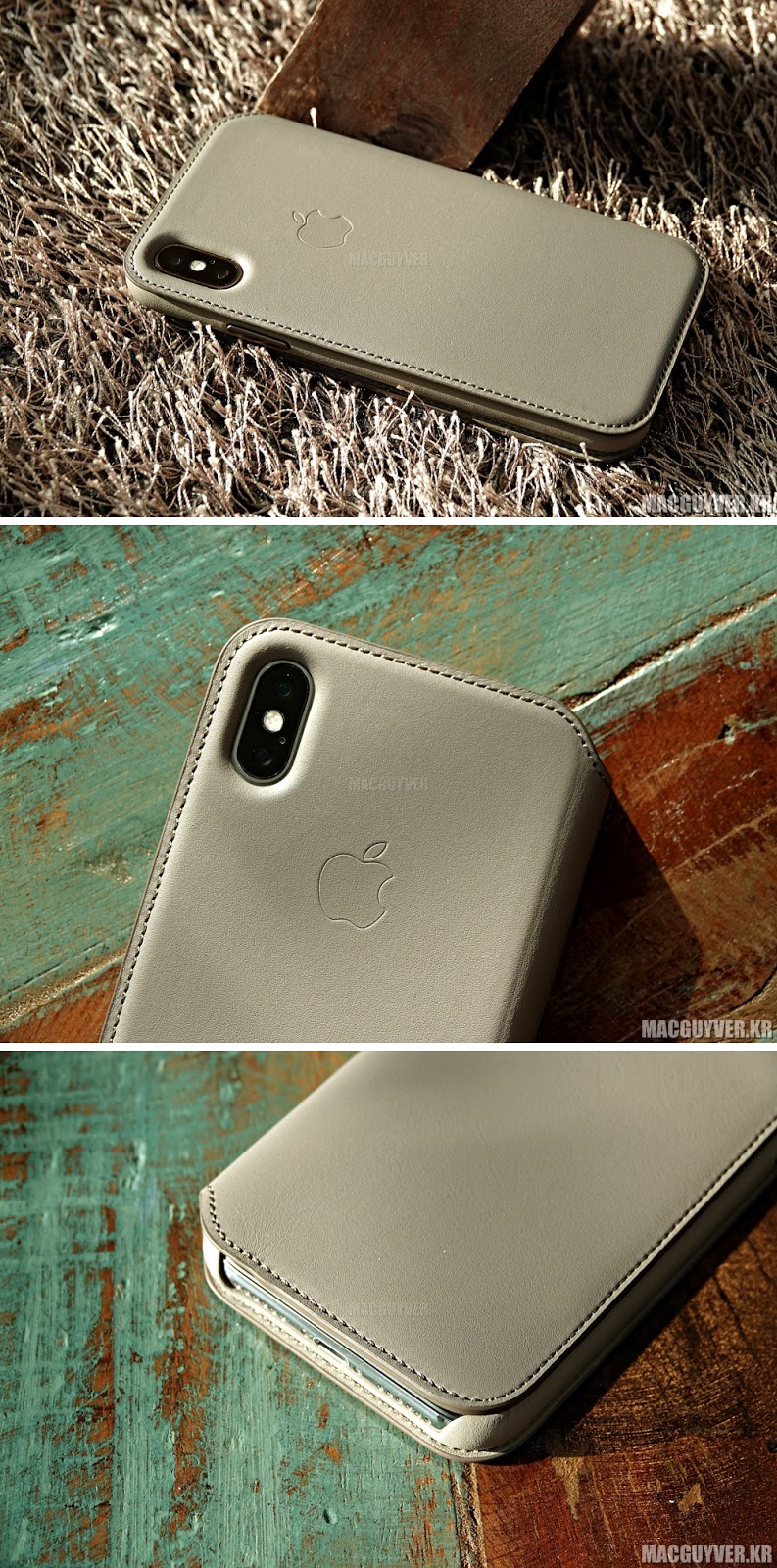 아이폰X 정품 토프 가죽 폴리오 케이스는 특유의 컬러감이 인상적이었는데, 토프 컬러는 그레이 톤이면서도 웜 그레이이기 때문에 차별화가 되기도 했고, 가죽 재질의 특성상 빛에 따라서, 그리고 마감에 따라서 달라지는 디자인과 빛깔로 고급스러움을 제대로 드러내줬다.