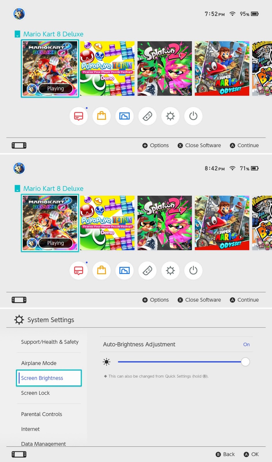 ✎ 무난한 수준의 배터리 성능을 보여준 닌텐도 스위치 X 마리오 카트 8 디럭스