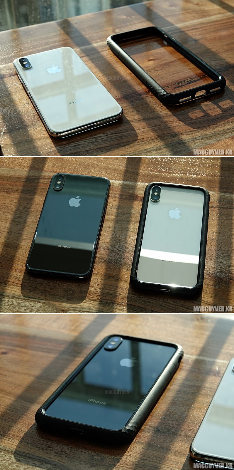 1) 범퍼케이스이다 보니 후면 보호층이 없다. 알루미늄 스마트폰의 경우 이 점이 큰 장점이 아닐 수도 있지만, 빛반사가 특징인 글라스 재질을 품은 아이폰X이라면 이야기가 달라진다. 아이폰X을 보호하면서 아이폰X의 후면 빛깔을 생폰으로 즐길 수 있기 때문.