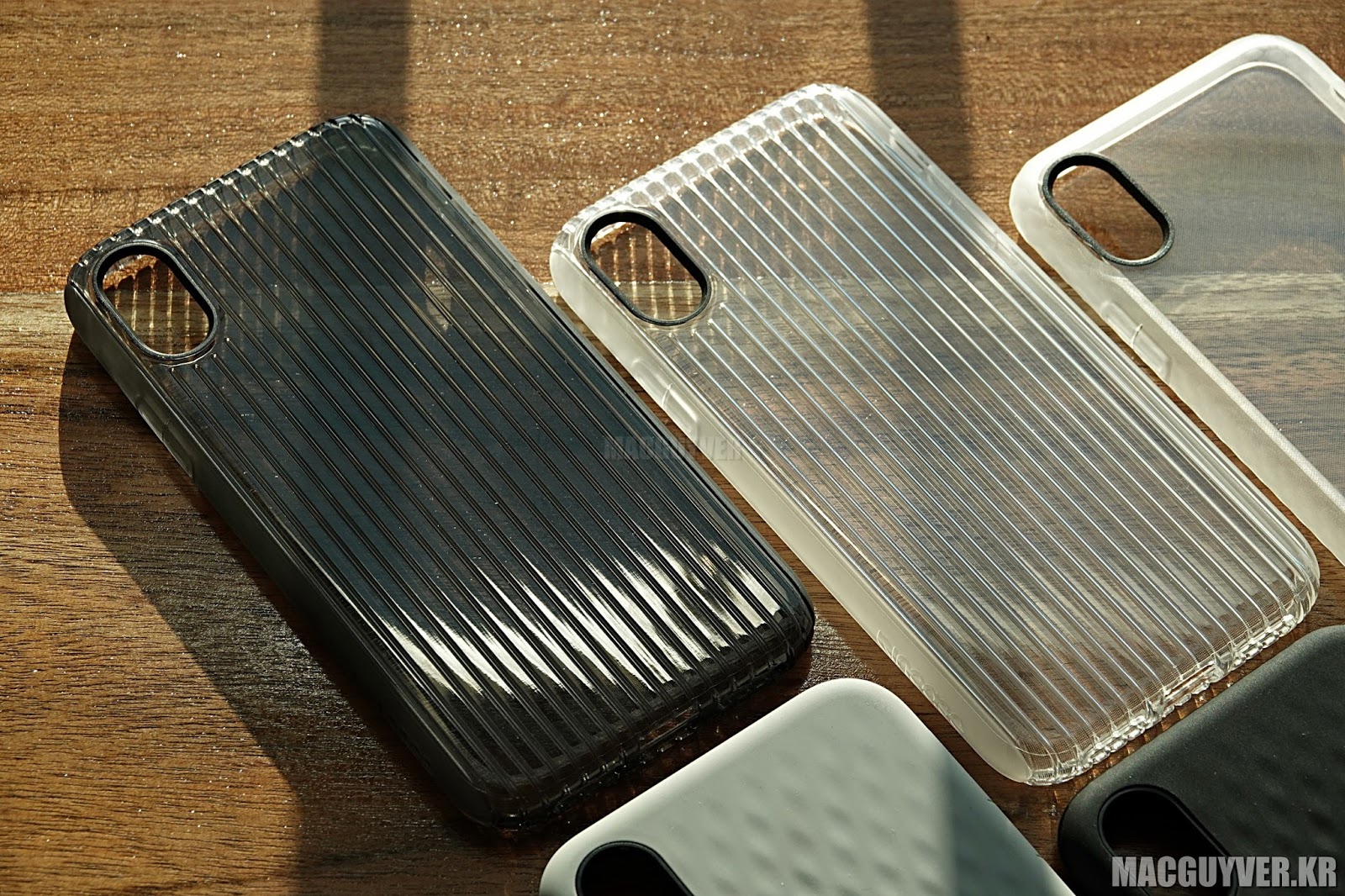 마지막으로 Protective Guard 케이스는 마치 여행용 하드 캐리어를 연상시키는 디자인을 품고 있다. 이름과 디자인에서 알 수 있는 것처럼 충격 완화 성능이 뛰어나고, 또 아이폰X의 후면 재질과 어우러져 독특한 컬러감과 재질감을 보여준다는 것이 이 케이스의 장점이었다. (바로가기)