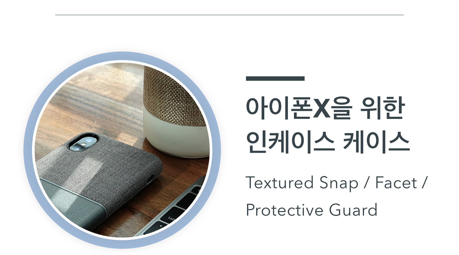 인케이스 케이스들은 아이폰X에 걸맞은 고급스러운 느낌, 그리고 인케이스라는 브랜드의 향기를 풍기는 케이스 저마다의 정체성을 공통점으로 가지고 있었다.