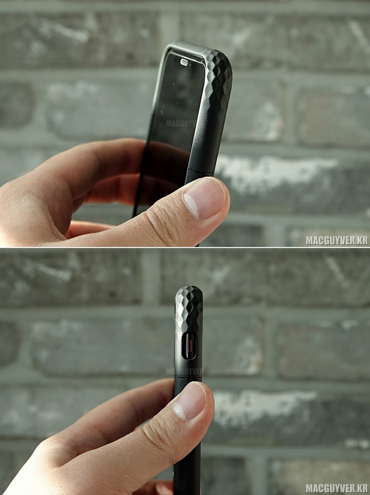 10) 인케이스 스마트폰 케이스는 버튼까지 일체감 있게 마감한 것이 특징인데, Protective Lattice Cover 아이폰X 충격 보호 케이스의 경우 버튼감이 좋지 않다. 버튼을 누를 때 힘 혹은 손톱이 요구된다.