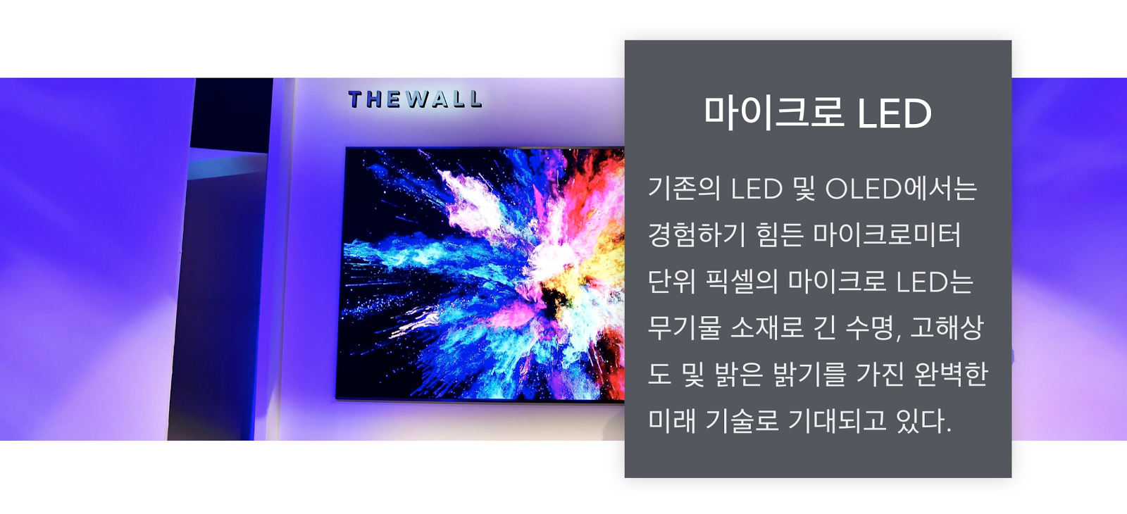 특히나 세계 최초 146형 모듈러 마이크로LED TV인 ’The Wall’은 마이크로LED를 통해서 초소형과 초대형의 만남을 제대로 선보이면서 새로운 가전 시장의 핵심으로 급부상했다.