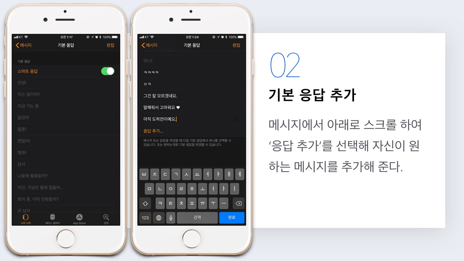 애플에서 기본적으로 제공해주는 기본 답장 메시지 중 골라서 보내면 되지만, 기본 답장 메시지에 원하는 문구가 없다면 곤란하다. 상황에 알맞은 문구를 넣으려면 어떻게 해야 할까?