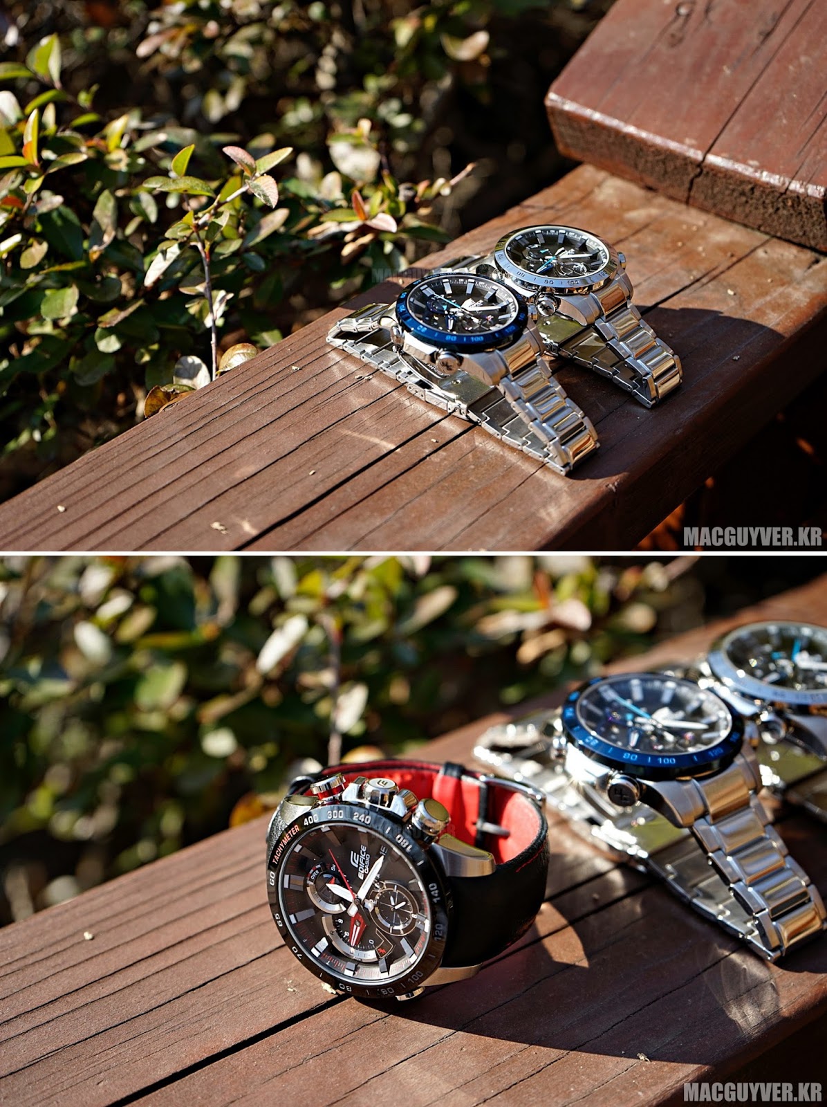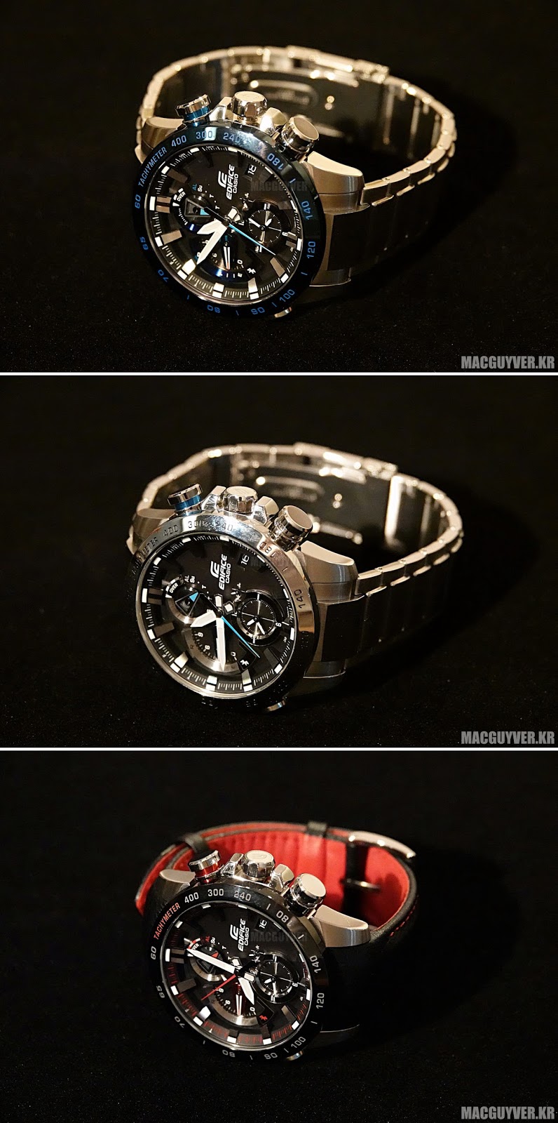 매우 정밀한 기계적인 성능과 블루투스 연동을 통한 추가 기능, 디자인적인 완성도와 재질적인 차이까지 더한 EQB-800 시리즈의 카시오 EDIFICE 아날로그 시계를 통해서 변하지 않는 아날로그방식 시계만의 가치를 경험해보는 것도 좋을 것 같다. - MACGUYVER.