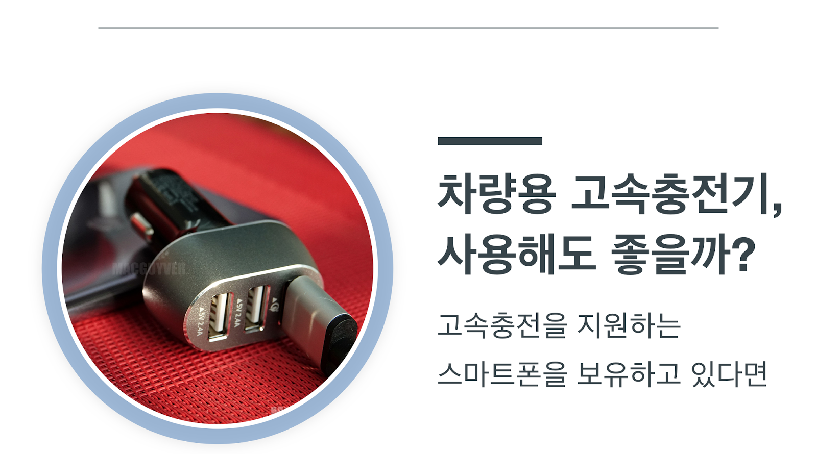 ✎ 일반 고속 충전을 지원하는 스마트폰과 퀵차지를 지원하는 스마트폰 모두를커버할 수 있는 차량용 충전기.