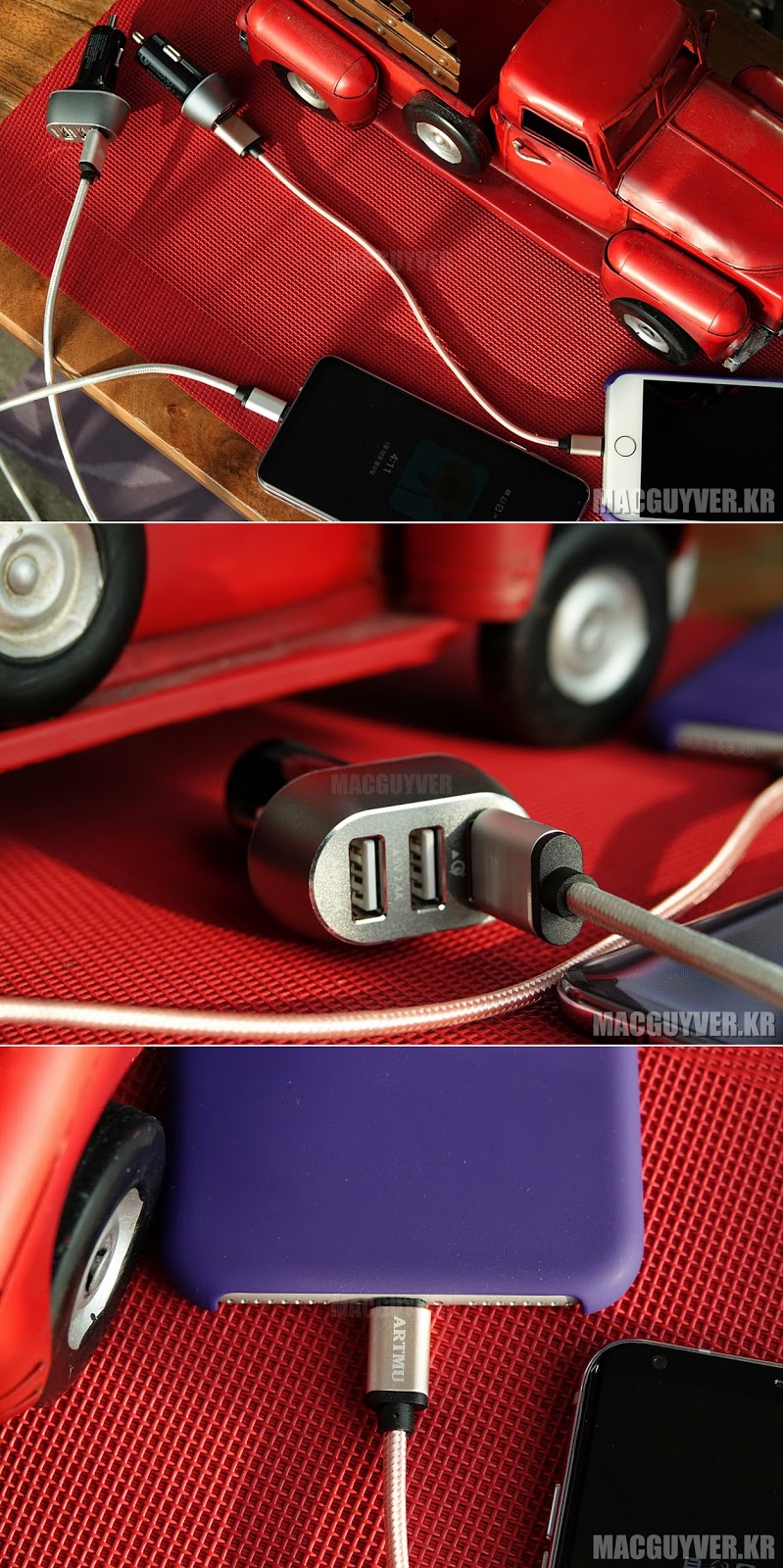 ✎ 아트뮤 충전기 두 개만 있으면, 차 안에서 누구의 스마트폰 배터리가 가장 긴급한지 대결할 필요가 없었다.