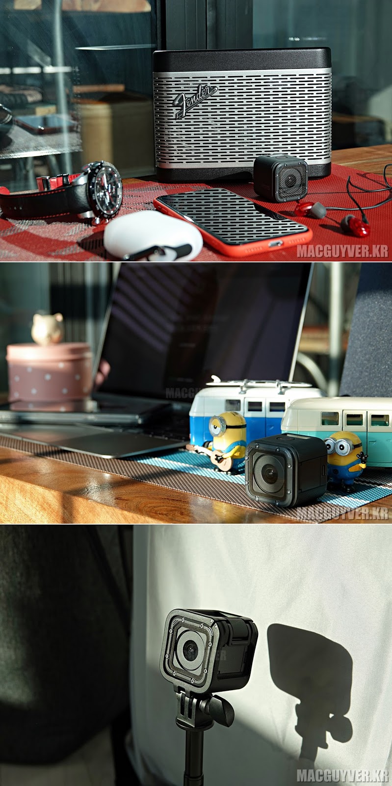 폰은 우선 넓은 화면과 상처나기 쉬운 구조적 한계를 가졌지만, 고프로 히어로5 세션 액션캠은 튼튼한 바디와 매우 작은 몸체로 인해서 어디든 부담 없이 들이대거나 촬영하는 것도 가능하다.