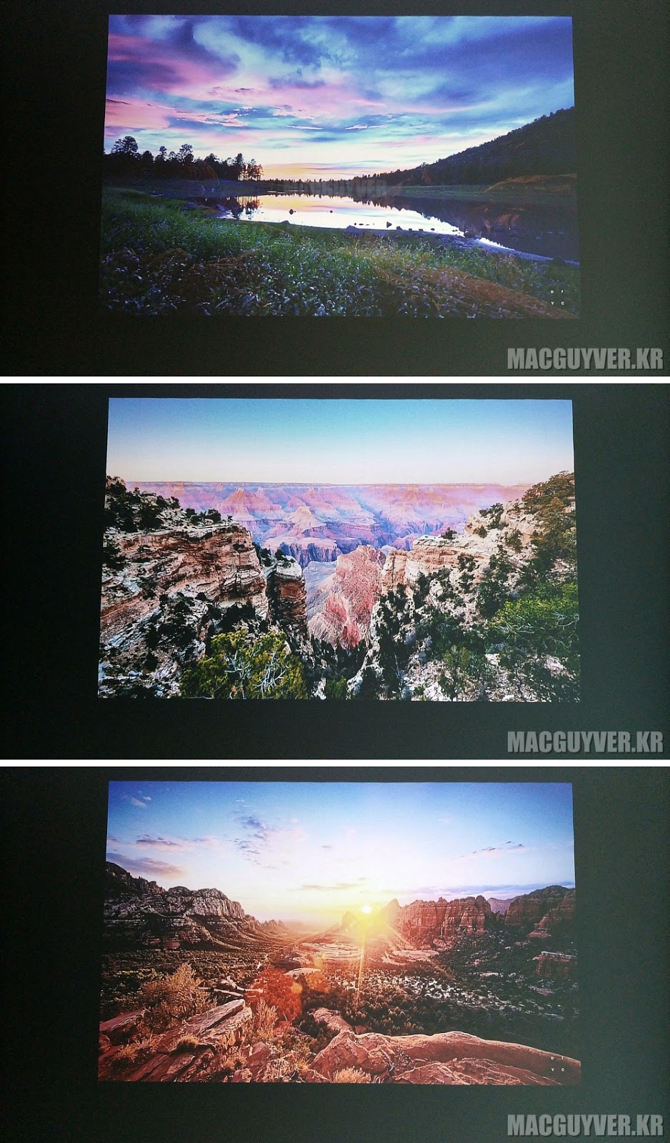 낮에도 커튼을 쳐야만 제법 화면이 잘 보였고, 특히나 물 빠진 느낌이 들지 않기 위해서라면 어두운 공간에서 봐야만 하기 때문에, 여느 프로젝터와 비교해서 더 밝다는 것이지, TV와 1:1로 비교하기에는 아쉬움이 들기도 했다.