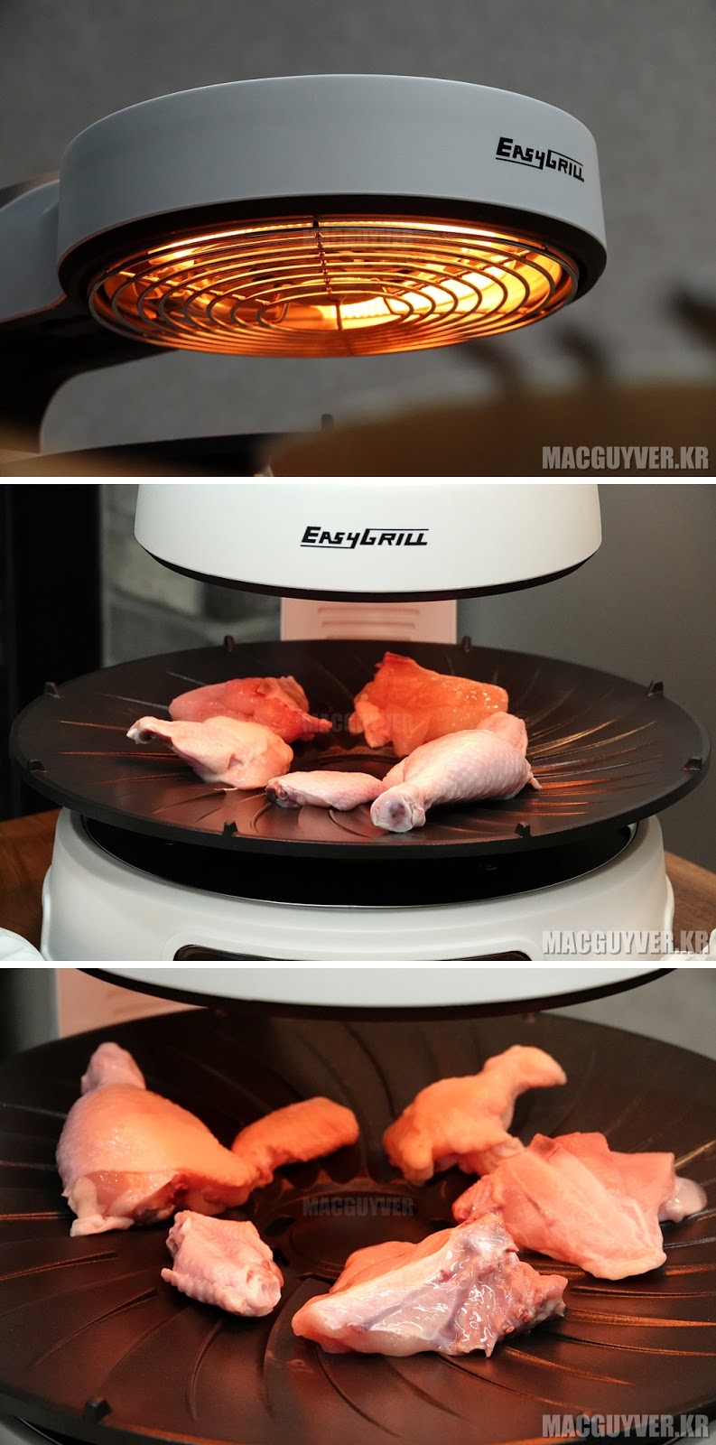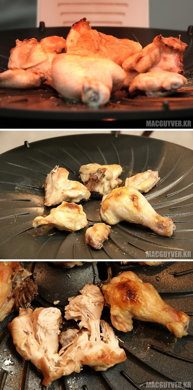냄새와 연기 없이 고기를 구울 수 있다는 것, 치킨 요리를 할 경우에도 속부터 제대로 익혀서 오븐에 구운 것처럼 바삭하고 촉촉한 식감을 제대로 맛볼 수 있다는 것. 무엇보다 바비큐 그릴이나 생선구이 그릴을 별도로 구비하지 않더라도 전천후로 모든 요리에 활용할 수 있다는 것이 가장 큰 장점이 아닐까 싶었다.