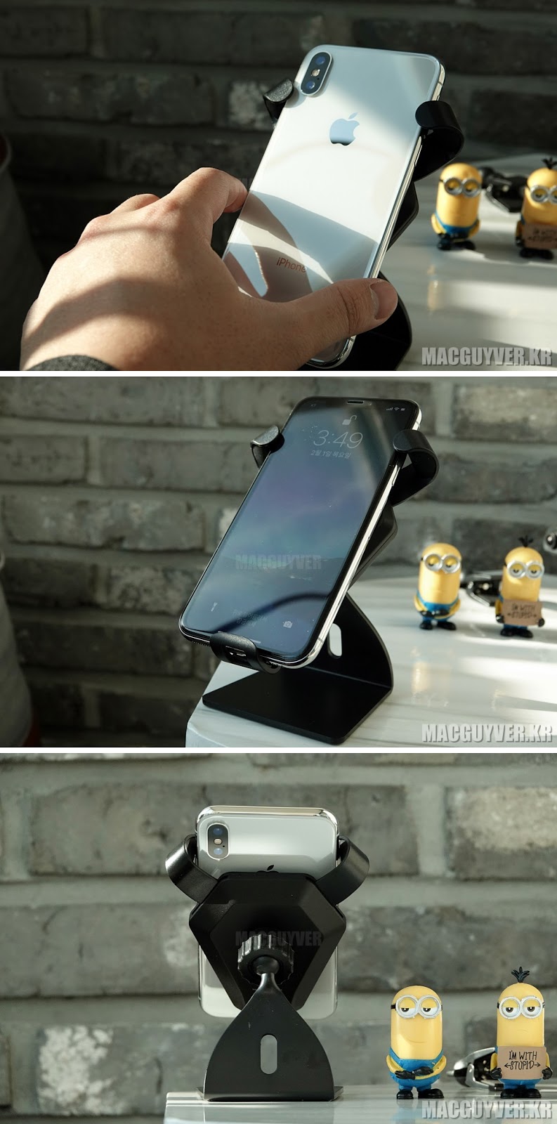 아쉬움이라면 폰을 중앙 부분에 맞춰서 놓지 않더라도 고정이 되기 때문에 약간 비뚤어지게 거치 될 수 있다는 점이 있었고, 충전기를 거치대에 고정할 때 수평이나 중심을 정확히 맞추기가 힘들다는 점에서 때로는 세밀하게 들여다보는 눈이 필요하기도 했다.