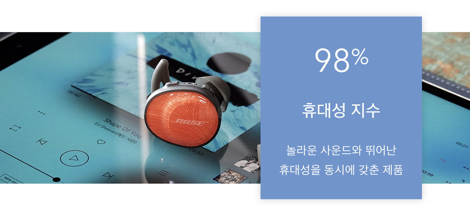 무엇보다 보스가 자체적으로 개발한 StayHear+ 스포츠 이어팁은 귓속에 전체적으로 고르게 닿게 되면서 귀 안쪽의 귓바퀴 모양처럼 자연스럽게 설계가 되어서 의도치 않은 탈착은 우려할 필요가 없다.