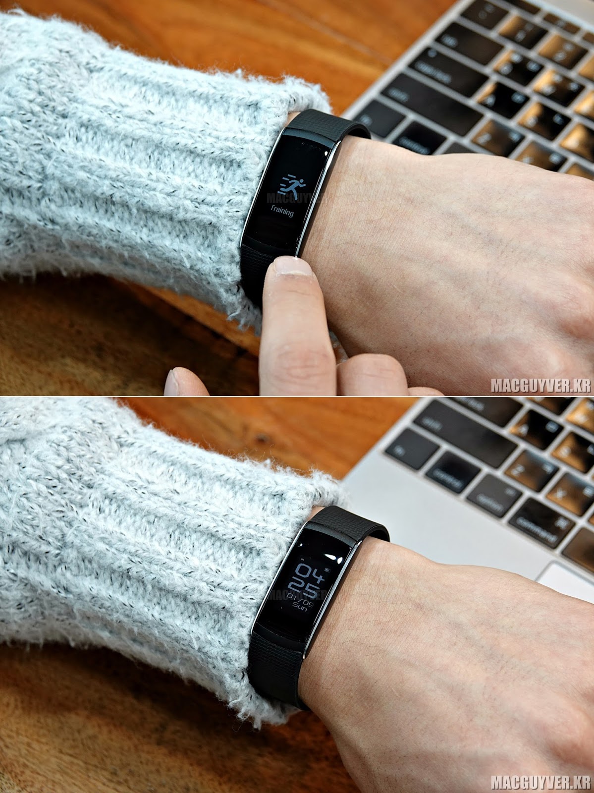 그리고 화면을 터치하지 않고 손목을 들어 올리는 동작만으로도 화면을 켤 수 있는데, 코아밴드의 가성비를 높여주는 또 한가지 특징이라 할 수 있다.