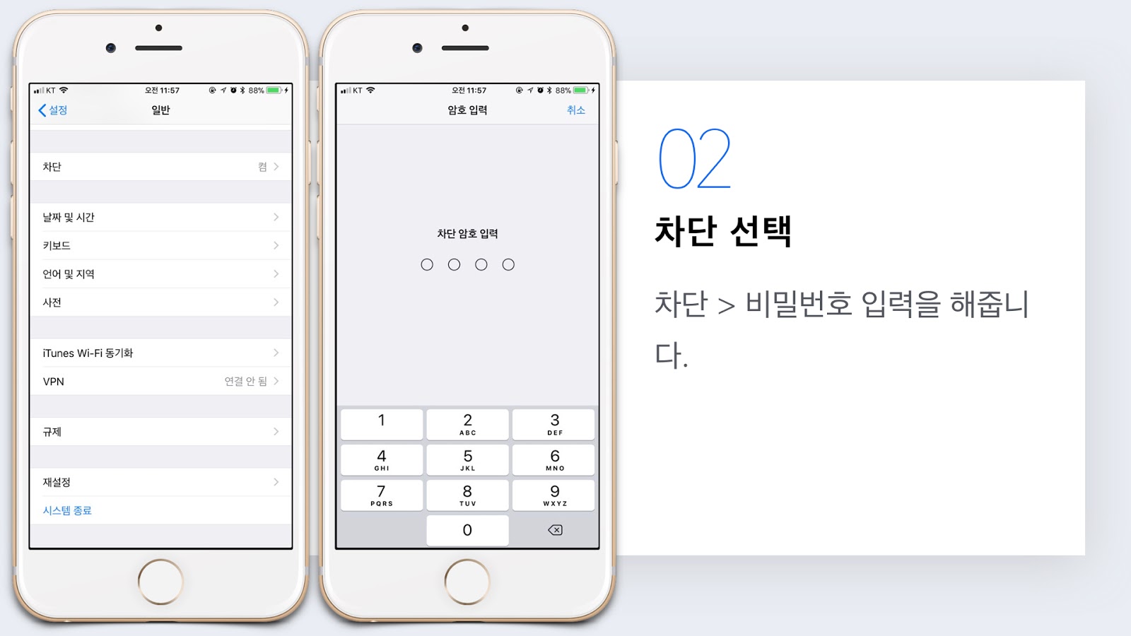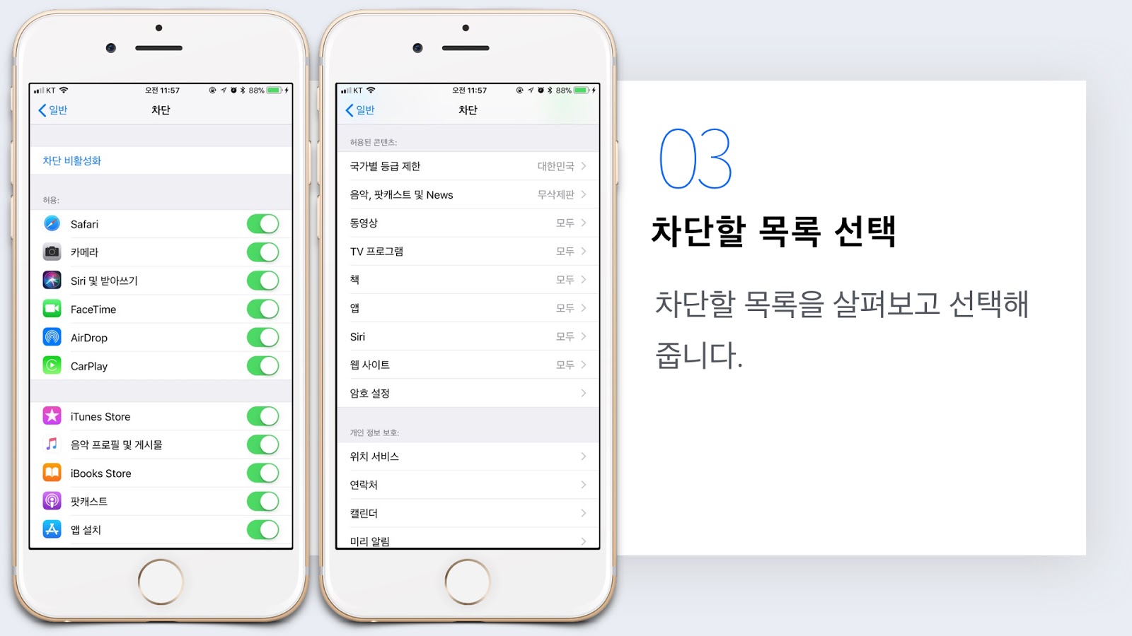 물론 다시 일상생활로 돌아오거나 다른 사람에게 아이폰을 보여줄 일이 없을 때에는 원래대로 되돌려 놓아야 하는데요. 이때 선택했던 항목들을 일일이 다시 해제할 필요 없이 차단 비활성화만 클릭하면 원상태로 돌아가기 때문에 손쉽게 바꿔보실 수 있습니다.