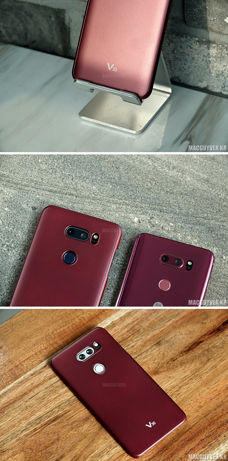 우선 V30 라즈베리 로즈와 잘 어울리는 컬러인 프리미엄 하드케이스는 라즈베리 로즈 컬러에서 유광을 쏙 빼고는 매트한 느낌으로 선보인 것 같았다.