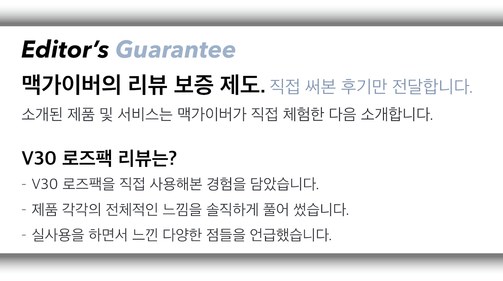 그 점에서 V30 라즈베리 로즈, 로즈팩의 의미는 엘지가 생각하는 ‘액세서리’ 그리고 ‘사용자 경험’에 대한 인식을 드러내준 것은 아닐까 싶었다. 차세대 모델에서는 스마트폰부터 액세서리 하나하나까지 엘지만의 아이덴티티와 가치가 담겨있기를 기대해봐야겠다. - MACGUYVER.
