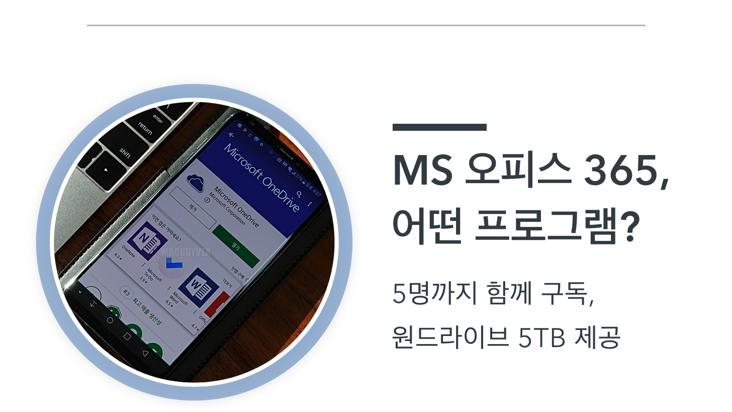 MS Office 365(오피스 365)는 워드와 엑셀, 파워포인트, 아웃룩, 원노트, 액세스, 퍼블리셔와 같은 대표적인 오피스 프로그램을 모두 제공하는 서비스다. 또한 최대 5명이 함께 사용할 수 있는 오피스 365 홈은 5명 모두 각각 원드라이브 저장 공간으로 1TB를 할당받게 된다.