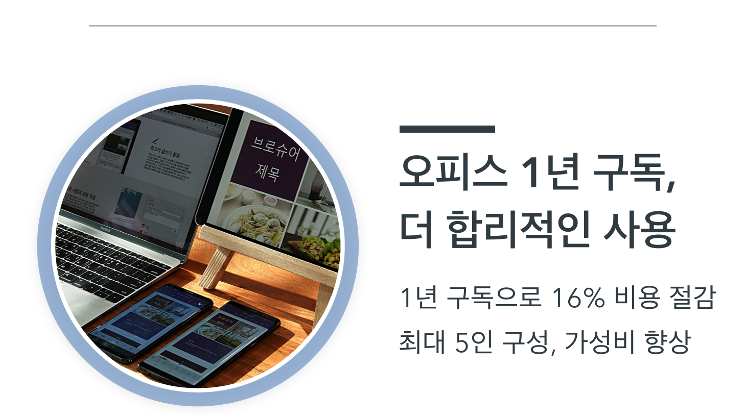MS Office 365(오피스 365)는 1년 구독으로 결제할 때 다달이 결제할 때보다 약 16%의 비용을 절감할 수 있기 때문에 매월 비용을 내는 것보다 더 가성비를 높일 수 있다.