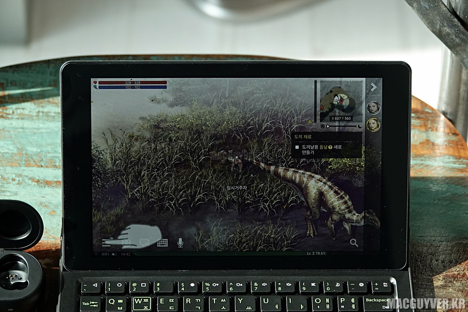 듀랑고의 경우는 기본적인 화면 전환 및 조작에 있어서는 딜레이가 전혀 없기도 했고, 전용 도킹 키보드를 통해서 바로바로 조작할 수 있다는 장점 또한 만족스럽게 다가왔다. 한 마디로, 성능은 이 정도의 가격을 고려하자면 뛰어난 수준이다.