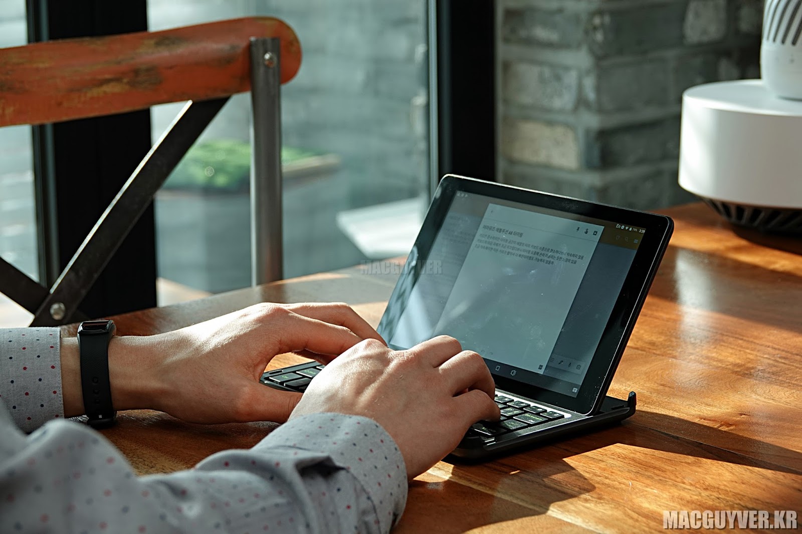 물론 별도 구매 제품으로서 19,000원의 비용이 발생된다는 점, 또한 화면 속 터치 키보드와 크기는 크게 차이가 나지 않는다는 점, 커버로서의 고정력을 위해서 모서리 부분이 뛰어나왔다는 점은 조금의 아쉬움이 되고 있다.